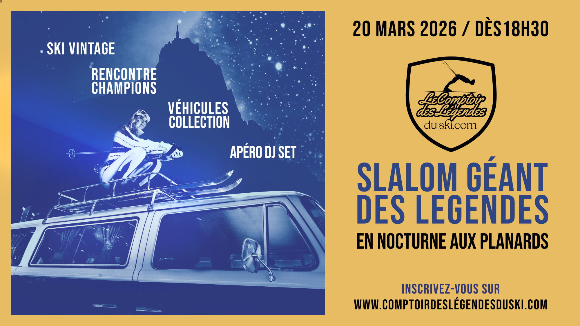 Le vendredi 20 mars à partir de 18h30, Les Planards accueillent le Slalom Géant des Légendes, une soirée festive organisée avec le Comptoir des Légendes.